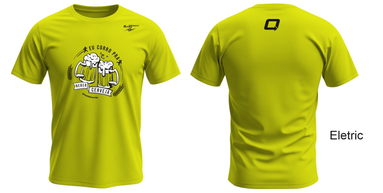 Camiseta EU CORRO PRA BEBER CERVEJA Amarelo Fluor em Poliamida