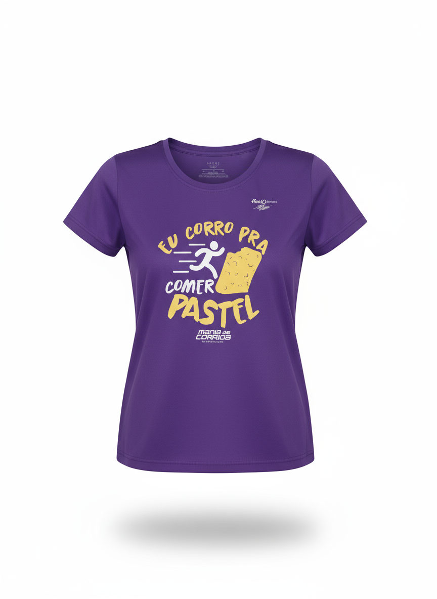 Camiseta EU CORRO PRA COMER PASTEL Roxa em Poliamida